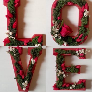 Les 4 lettres LOVE , les fleurs séchées  et le petit outillage seront  à votre disposition le jour de l'atelier.