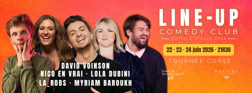 Sous le ciel corse, entre Cap Corse et golfe d’Ajaccio, viens vivre trois soirées d’humour inédites et mémorables avec le LINE-UP Comedy Club – Sottu e Stelle.