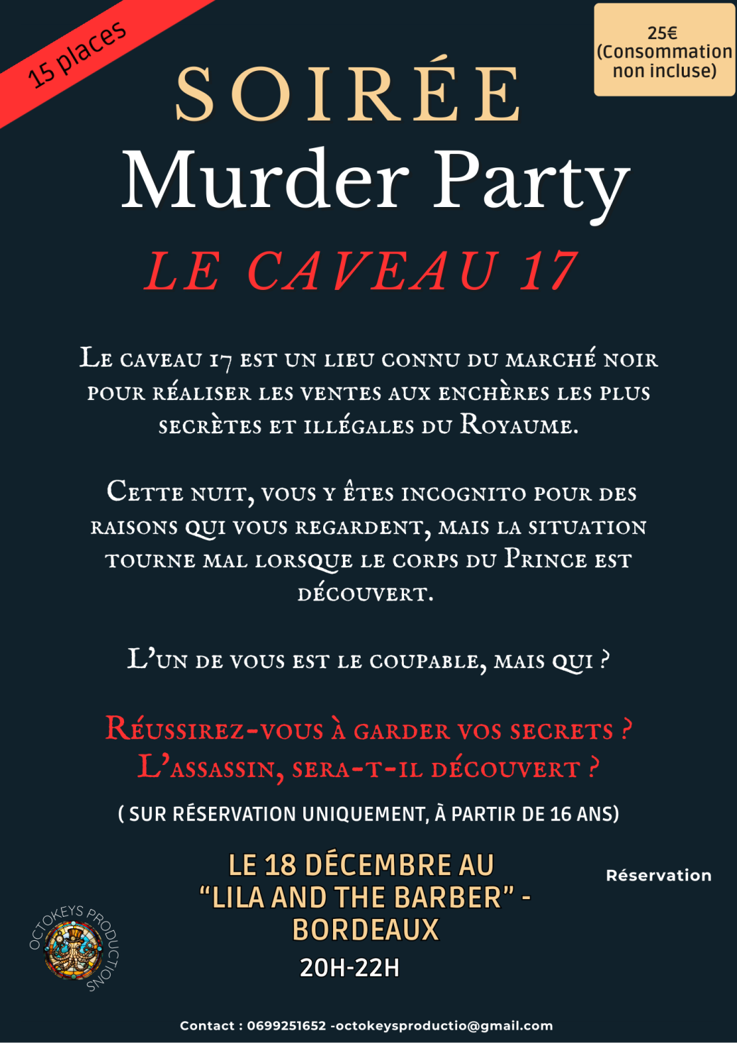 Reservations on : https://www.billetweb.fr/murder-party-caveau-17 --