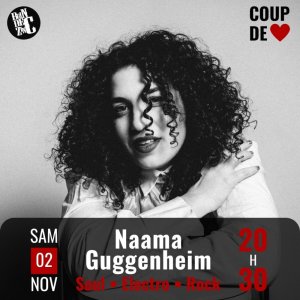 La chanteuse, auteure-compositrice et productrice Naama Guggenheim est à surveiller de près. Naama et son équipe exceptionnelle ont trouvé cette combinaison inspirante d'une voix profonde et émouvante, de mélodies accrocheuses et de paroles profondes, le tout accompagné d'une rythmique électronique. Naama s'est plongée dans les sonorités de la soul et bien d'autres encore, développant son style d'écriture unique à travers la guitare. En mélangeant différentes langues et genres, sa performance en direct est un spectacle émotionnel et touchant, tant pour le corps que pour l'esprit.
