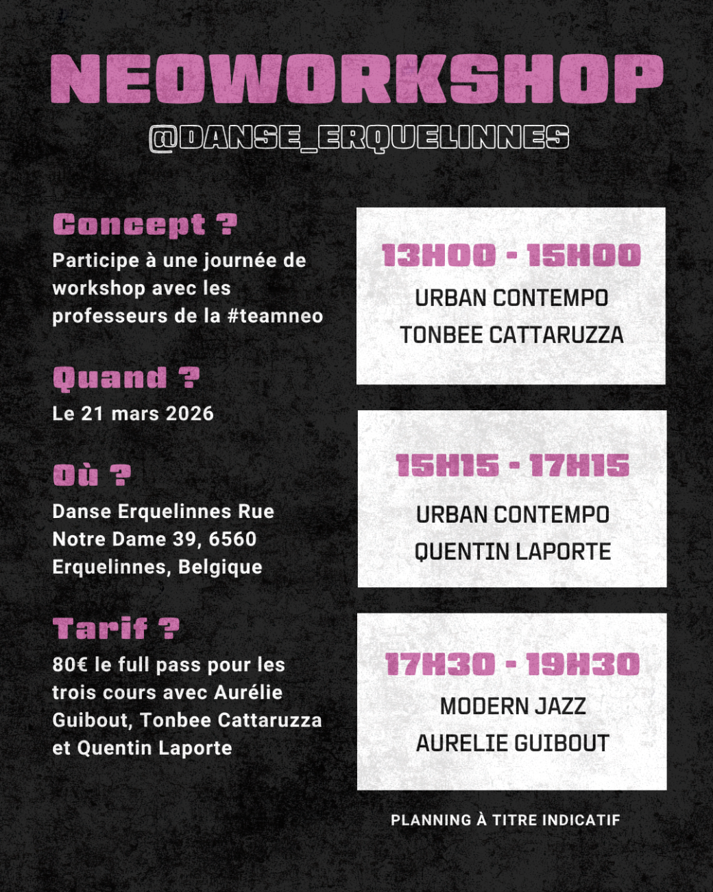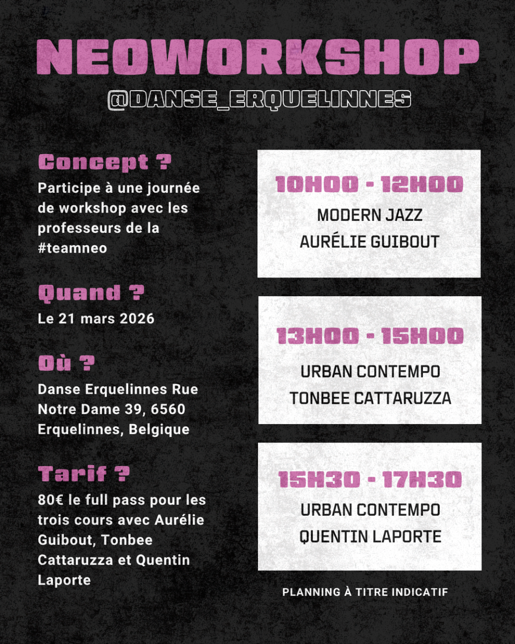 L'événement est organisé par Neodance Academy et son partenaire Danse Erquelinnes.
