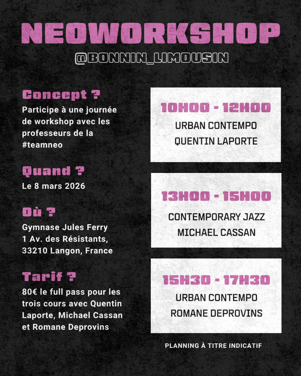 L'événement est organisé par Neodance Academy et son partenaire Ecole de Danse Bonnin Limousin.