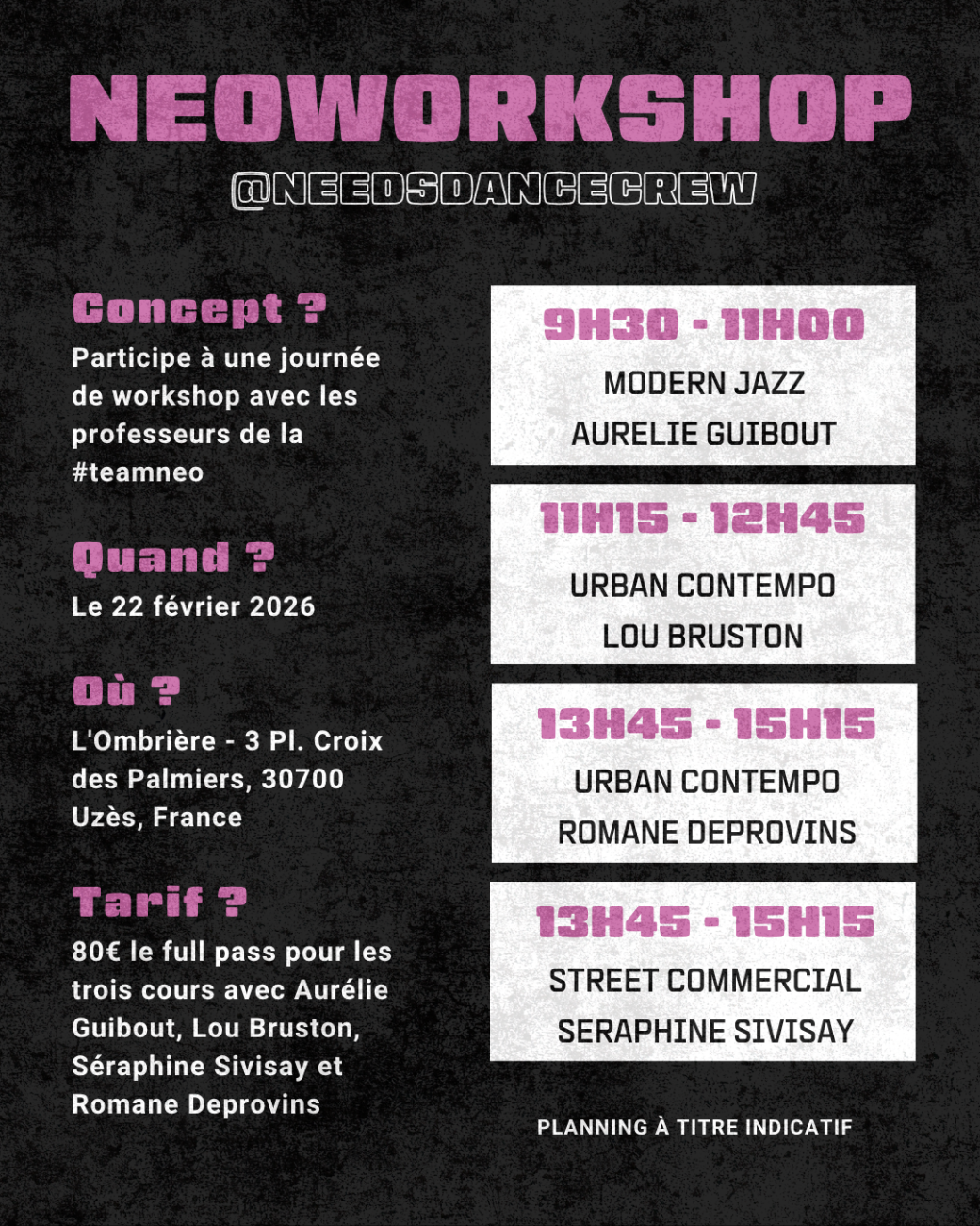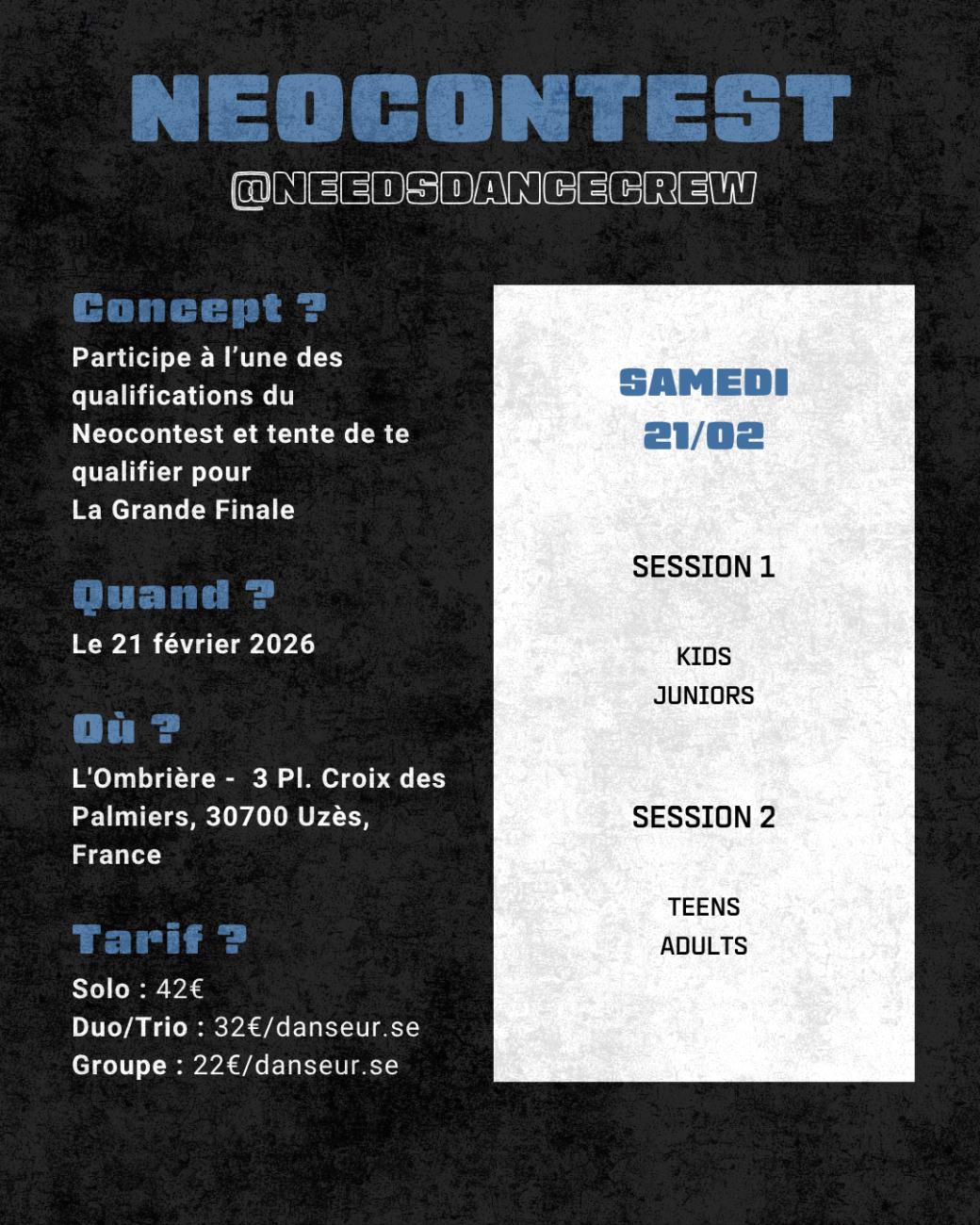 Le Neodance Tour - Edition 2026 est une tournée organisée dans le but de promouvoir la danse dans tous ses styles, à travers la France mais aussi à l'international.