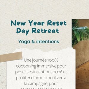 Les traditionnels ateliers 'New Year' d'écriture et de vision board seront complétés par une longue pratique de yin yoga (avec intentions bien sûr), un brunch savoureux, et cerise sur le gâteau, un accès illimité au jacuzzi si vous réfléchissez mieux dans l'eau chaude :)
