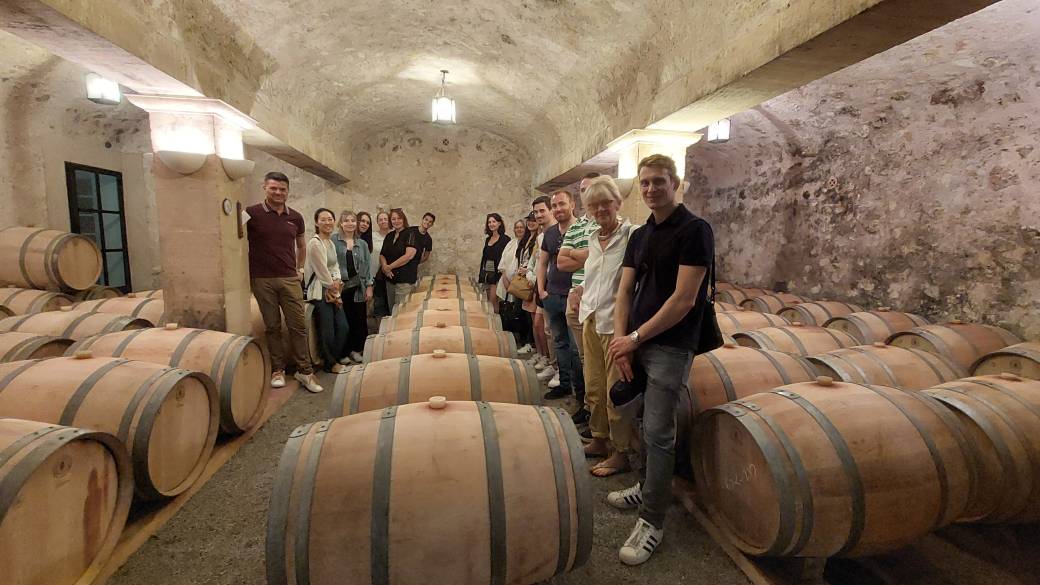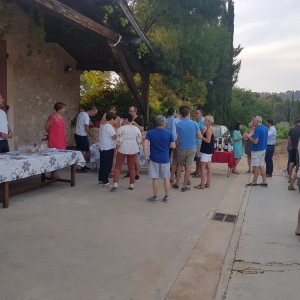 Après une visite dans les vignes puis les caves, dégustation de champagne puis des vins du domaine (dans les 3 couleurs) avec les vignerons, autour d'un repas concocté par mon traiteur (salades, grillades, fromages, dessert).