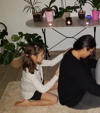 Je serai là pour vous accompagner, pour vous lire une histoire et pour que vous la dessiniez sur le dos de votre petit-enfant ! Non seulement ça, mais aussi c'est lui qui va vous la dessiner sur votre dos et vous allez découvrir toute la tendresse et l'amour qu'il vous porte dans son coeur ! Après le massage thématique, vous ferez ensemble des activités kiné-tactiles qui favorisent la concentration et la coordination chez les enfants.