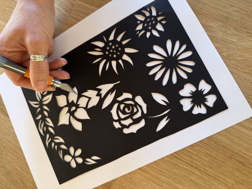 Connaissez-vous l’art du découpage papier qui nous vient du Pays-d’Enhaut en Suisse ? Ces illustrations représentent souvent la vie en alpage et sont faites à partir de papier découpé à la main. À l’aide d’une fine lame, initiez-vous à cette technique et ciselez votre plus belle fleur de montagne.