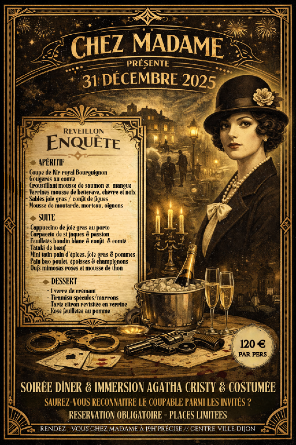 Vous êtes convié à une soirée exclusive, inspirée de l’univers d’Agatha Christie, où rien n’est tout à fait innocent… et personne totalement fiable.