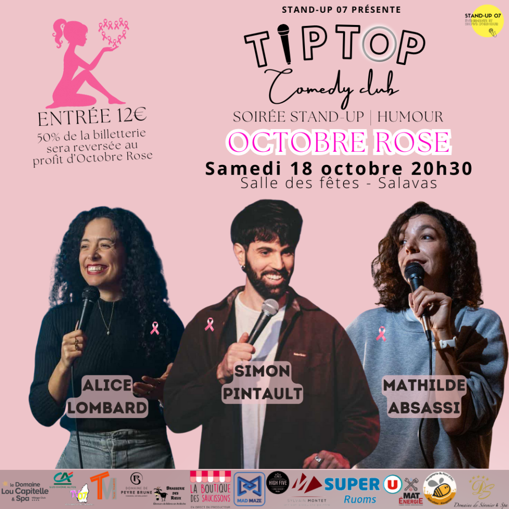 Pour Octobre Rose, le Tip Top Comedy Club revient pour une nouvelle soirée de rire !