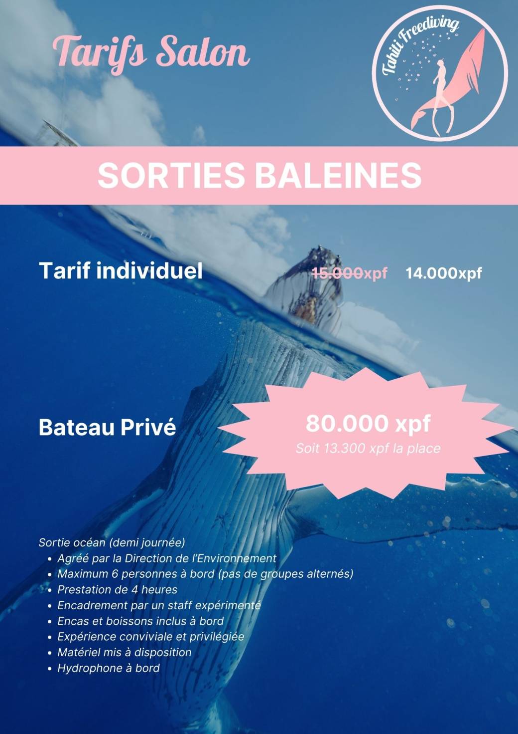❗ Les billets pour les sorties baleines sont valables uniquement durant la saison baleines 2026 (jusqu'au 20 novembre, selon les conditions météo et la présence des cétacés).