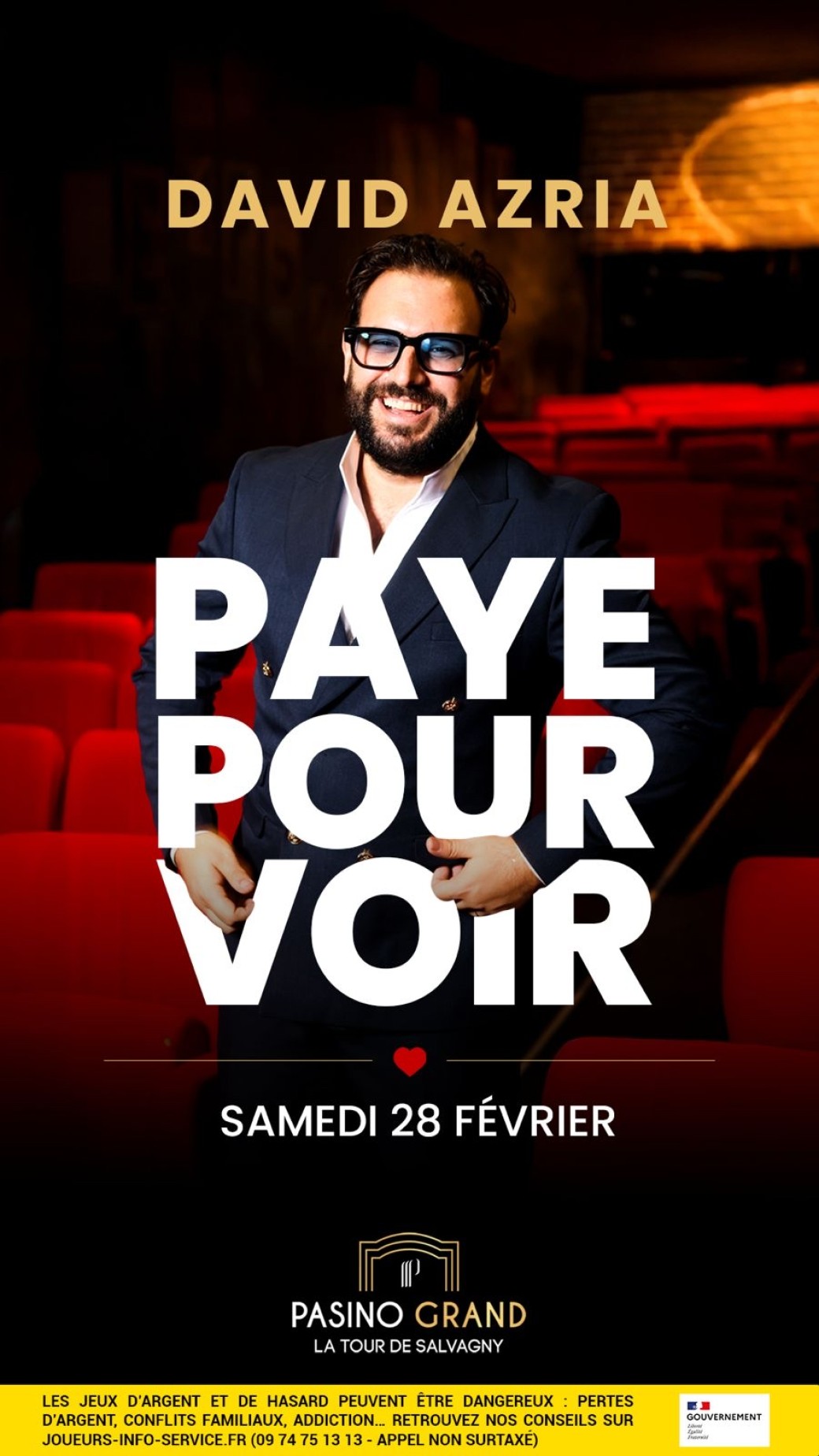 Inclus dans le prix de votre billet : profitez du One Man Show et de 5€ de crédits de jeu offerts à dépenser au Pasino Grand Partouche - La Tour-de-Salvagny !