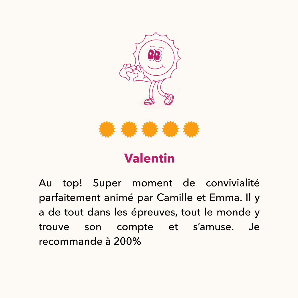 Des compétitions ensoleillées & des jeux inédits pour profiter d'un moment d'évasion totale. Tu oublies tout le temps d'un après-midi et plus qu'une seule chose ne compte : amener ton équipe à la victoire ✨