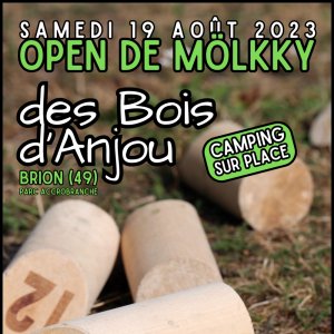 L'Open de Mölkky des Bois d'Anjou vous accueillera le samedi 19 août à Brion (49) ! Le tournoi se jouera en doublette, limité à 48 équipes !
