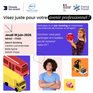 Participez à un Job‑Bowling, découvrez les métiers du transport et de la logistique et échangez autrement avec des recruteurs, dans une ambiance conviviale favorisant les échanges authentiques et la valorisation des savoir‑être.