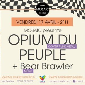 2026-04-17 20:15:002026-04-17 23:30:00Europe/ParisOPIUM DU PEUPLE + Bear Brawler // MOSAIC LA SALLEReservations on : https://www.billetweb.fr/opium-du-peuple-bear-brawler-mosaic-la-salle