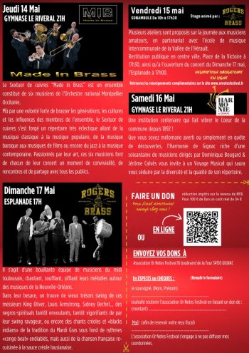 2026-05-17 17:00:00 2026-05-17 19:00:00 Europe/Paris Or Notes Festival : LES ROGERS BRASS Reservations on : https://www.billetweb.fr/or-notes-festival-big-funk-brass2 -- Repli au Gymnase " Le Riveral" à Gignac en cas de mauvais temps Place de Verdun, Gignac, France Or Notes Festival