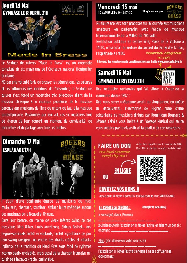 2026-05-16 21:00:00 2026-05-16 23:00:00 Europe/Paris Or Notes Festival : Harmonie de Gignac Reservations on : https://www.billetweb.fr/or-notes-festival-harmonie-de-gignac4 -- Gymnase Le Riveral, Gignac, France Or Notes Festival