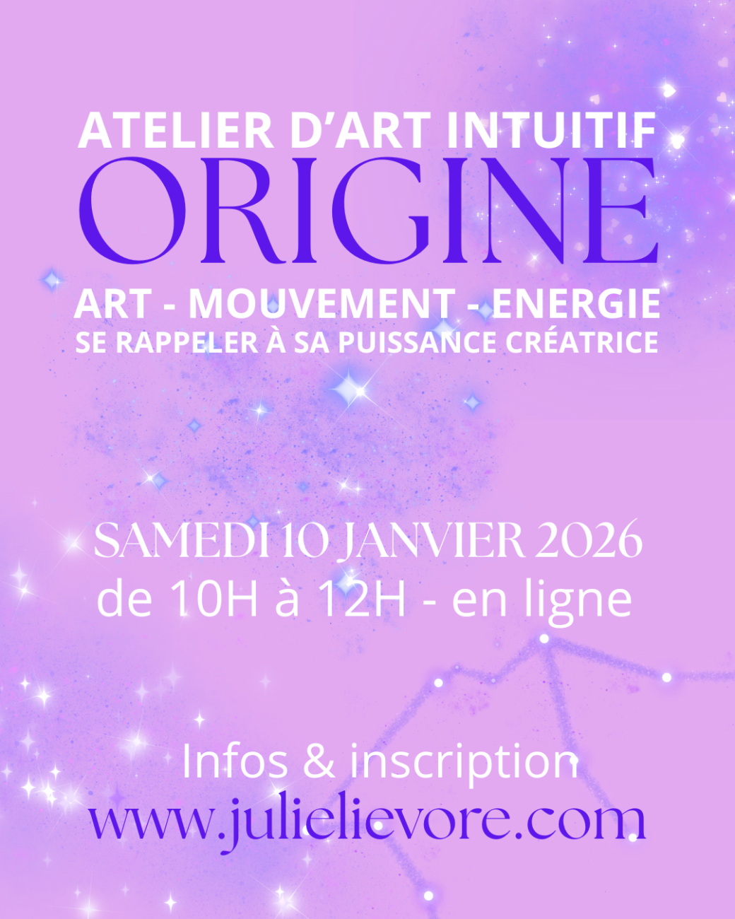 Celui d’où tout part. Celui où tu n’es rien… que le Tout. Par le geste, la matière, la voix, on laisse parler ce qui en nous ne s’est jamais éteint.Il ne s’agit pas de faire du beau. Il s’agit de retrouver le fil. Celui de ta fréquence unique, vivante, cosmique. Un atelier pour explorer, ressentir, activer. Un moment suspendu pour créer sans attente, et laisser émerger ce qui t’habite.