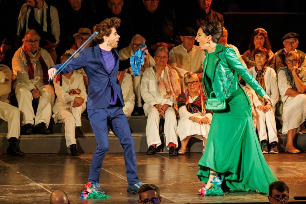 Mettre en scène Orphée aux Enfers, c'est chercher un esprit d'impertinence, s'amuser à détourner, rire de tout, à transformer la mort même en carnaval. Une vraie comédie déjantée, parlée et chantée ! Le jeu d'acteur passe du burlesque le plus assumé à des moments de grâce suspendus qui nous rappellent quel fin musicien était Offenbach. On retrouve des airs connus de tous, comme le si célèbre Can-Can. Chorégraphique, ciselée, toujours rythmée, la mise en scène se déploie dans un visuel coloré et décalé, entre moderne et intemporel, sur trois tableaux : la Terre, l'Olympe, et des Enfers imaginaires, où l'on rencontre des Dieux et créatures aussi fantasques qu'attachantes.