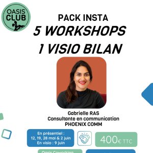 Un pack de 5 workshops pour devenir un.e pro d'Instagram et une visio "Bilan collectif" pour faire le point sur les compétences acquises.