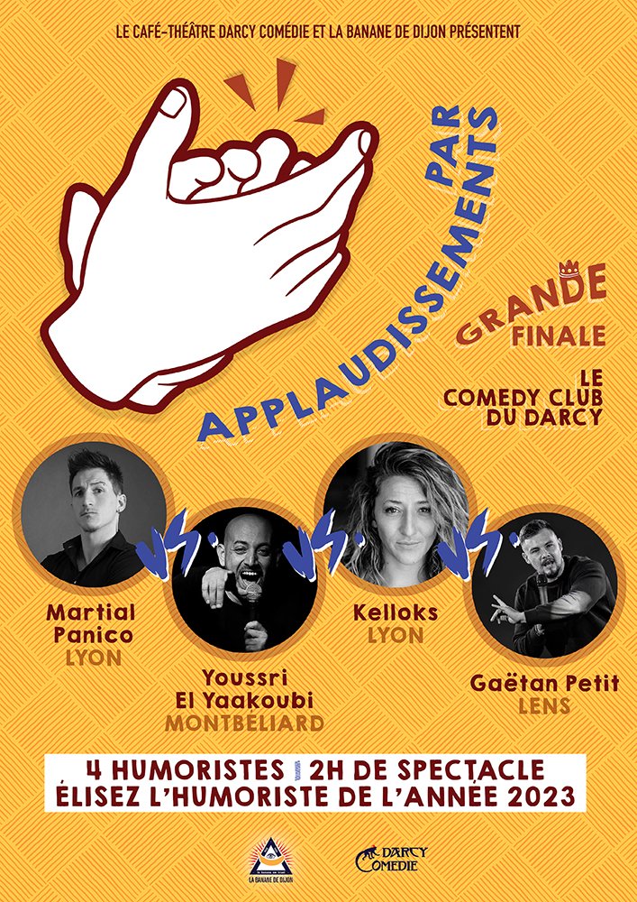 Organisées par le collectif d'humoristes La Banane de Dijon en partenariat avec le Café-Théâtre Darcy Comédie, les soirées Par Applaudissements vous permettent de découvrir les talents de l'humour de demain.