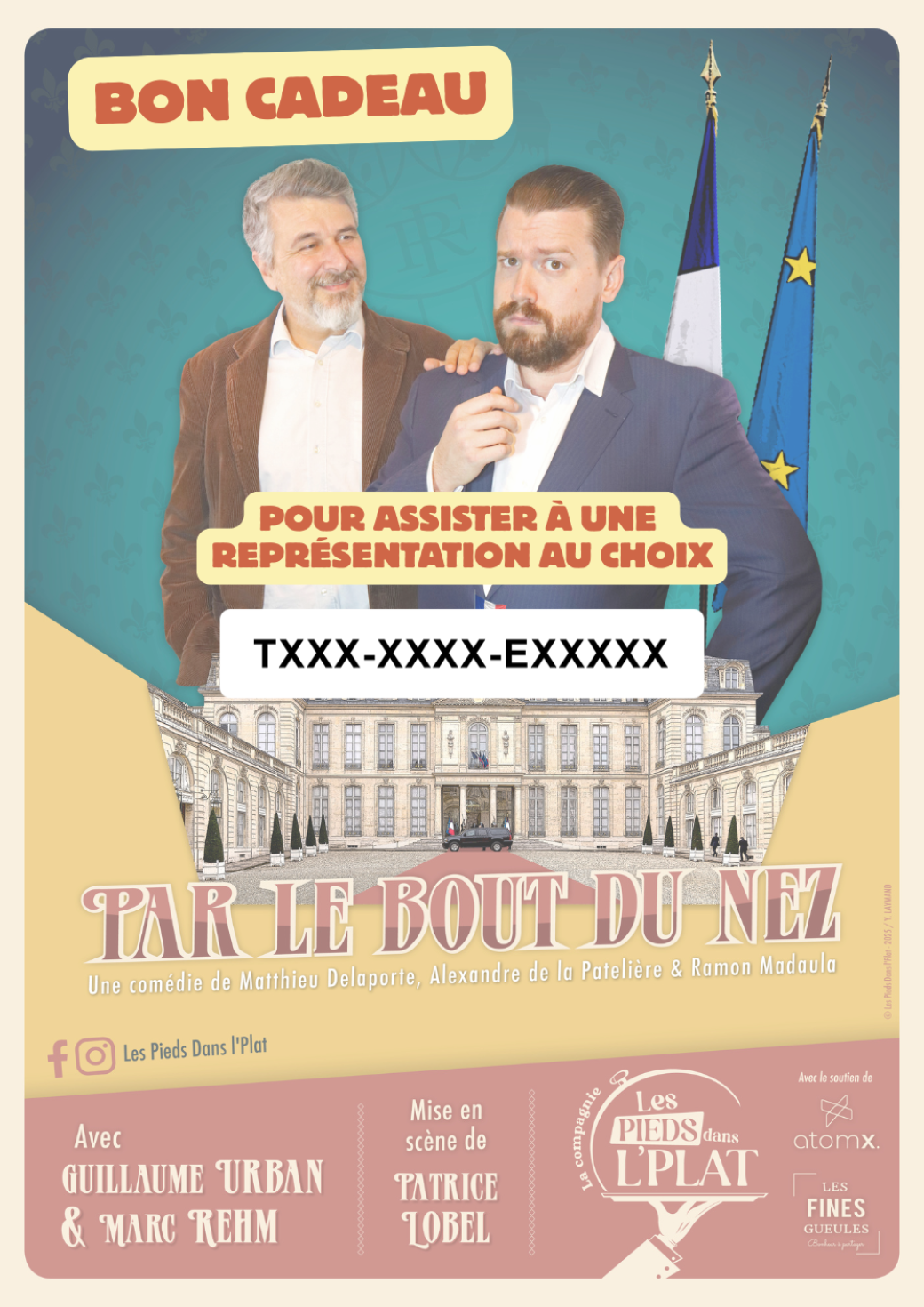 Du 9 décembre 2025 au 31 janvier 2026, offrez un Bon Cadeau pour assister à une représentation de la pièce "Par le bout du nez" par la compagnie Les Pieds Dans l'Plat, au théâtre du Cube Noir