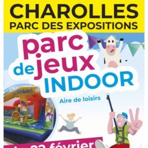 Parc de Jeux Récréatif "INDOOR" pour les enfants de 4 à 12 ans, au parc des Expositions du Charolais, Espace Arconse, comprenant une MAXI ZONE DE JEUX GONFLABLES + un PARCOURS ACCROBRANCHES de 12 ateliers à 2 m de hauteur et sa tyrolienne de 8 m de long pour les enfants à partir d'une taille de 1m10 minimun. (OPTION Accrobranches en illimité + 4€ en vente sur place uniquement après avoir vérifié les prérequis d'accés, Age et taille minimum, motivation,...)