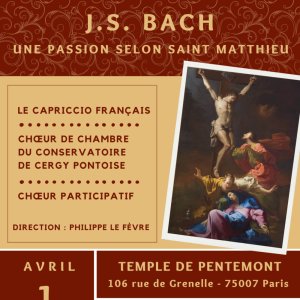 A l’occasion de cet événement, nous avons décidé de monter un chœur participatif : il s’agit pour les spectateurs qui le souhaiteront de chanter avec nous quelques chorals de la Passion selon Saint-Matthieu. N'hésitez pas à vous inscrire !