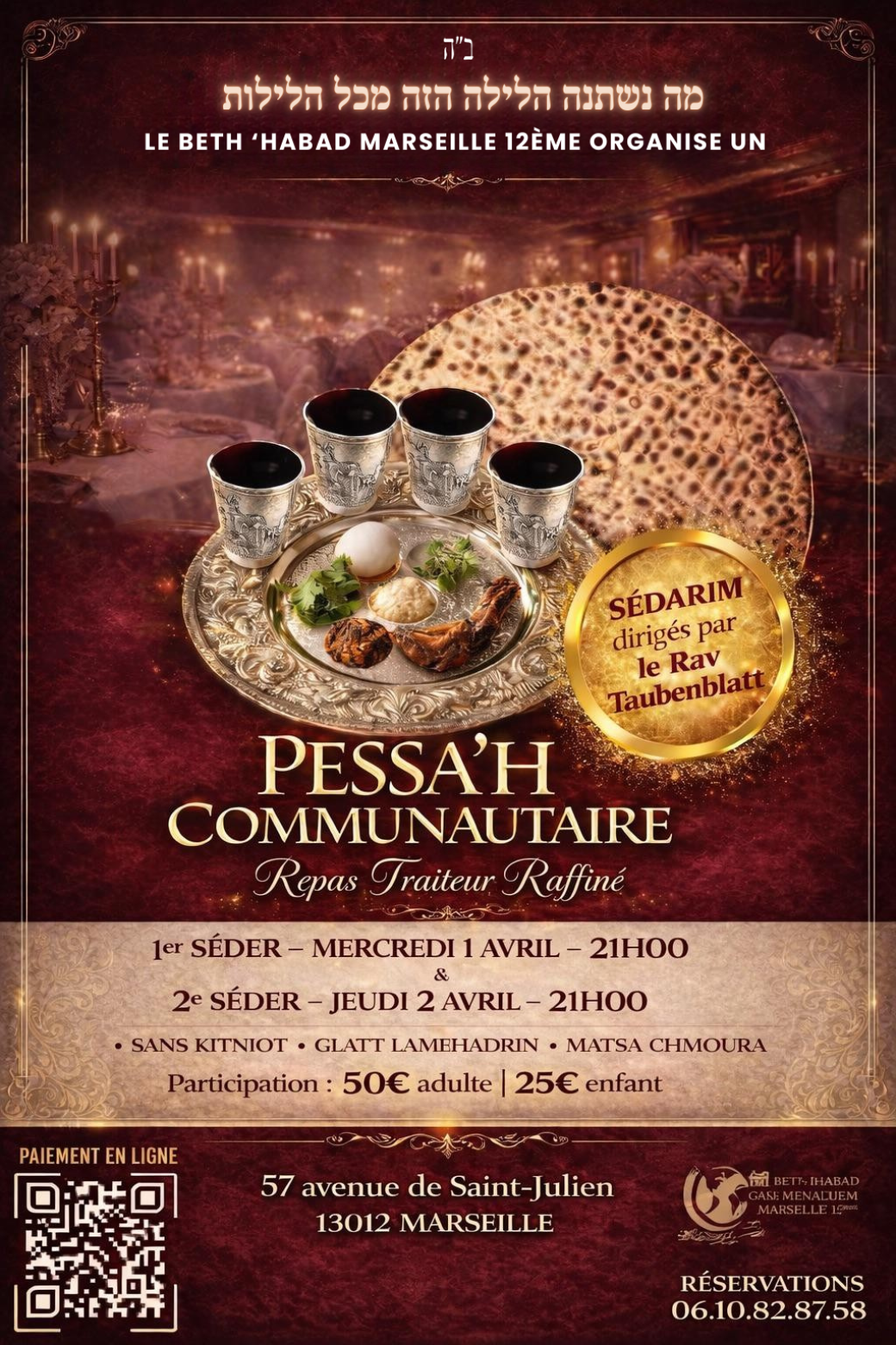 Reservations on : https://www.billetweb.fr/pessah-communautaire-bh12 --