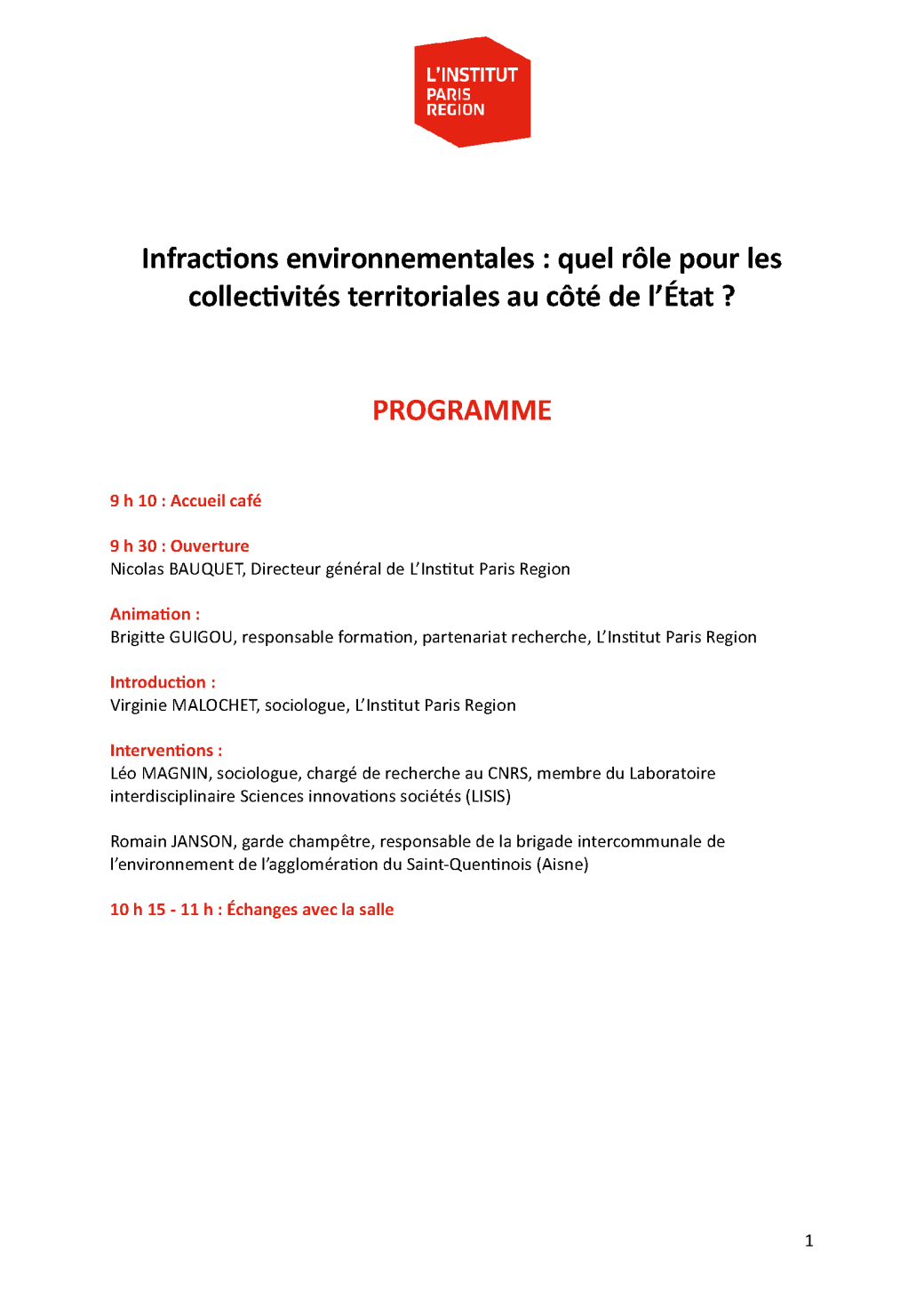 2026-04-08 09:15:002026-04-08 11:00:00Europe/ParisInfractions environnementales : quel rôle pour les collectivités territoriales au côté de l’État ?Reservations on : https://www.institutparisregion.fr/