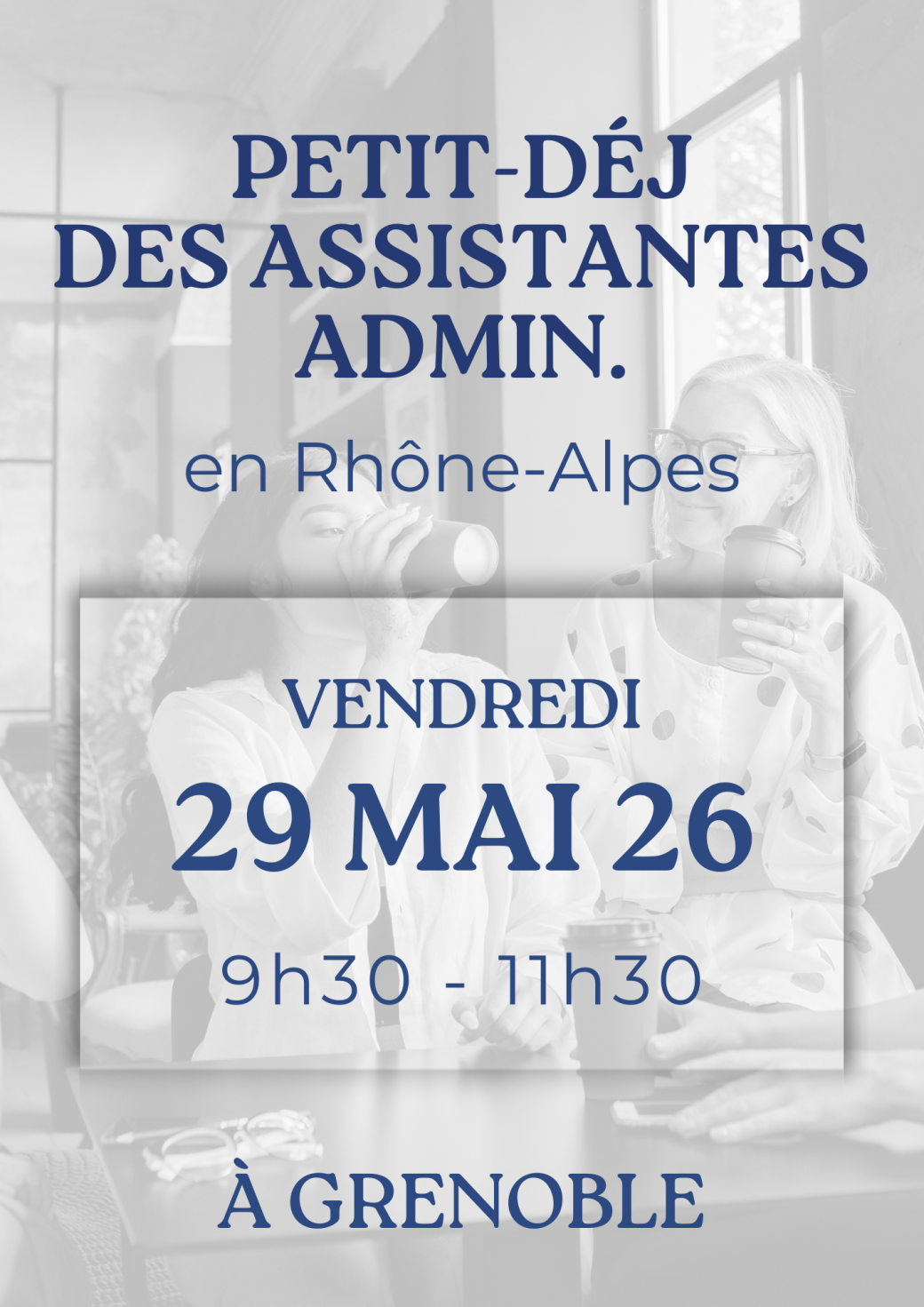 2026-05-29 09:30:00 2026-05-29 11:30:00 Europe/Paris Petit Déj des assistantes admin. Reservations on : https://www.billetweb.fr/petit-dej-des-assistantes-admin -- En tant qu’assistante administrative indépendante, on est souvent très entourée… mais aussi souvent seule dans notre quotidien pro.   Entre gestion des urgences, organisation, relation client et diversité des missions, il est parfois difficile de prendre du recul ou d’échanger avec des personnes qui vivent la même chose.   Ces petits-déjeuners sont nés de cette réalité. ➡️ Créer un espace simple, chaleureux et bienveillant ➡️ Permettre aux assistantes de se rencontrer ➡️ Partager leurs expériences, leurs pratiques et leurs questionnements   Chaque rencontre est organisée autour d’un thème concret lié à notre métier, afin de nourrir les échanges et d’apporter des pistes directement applicables dans son activité. Grenoble, France Glob'All Groupe