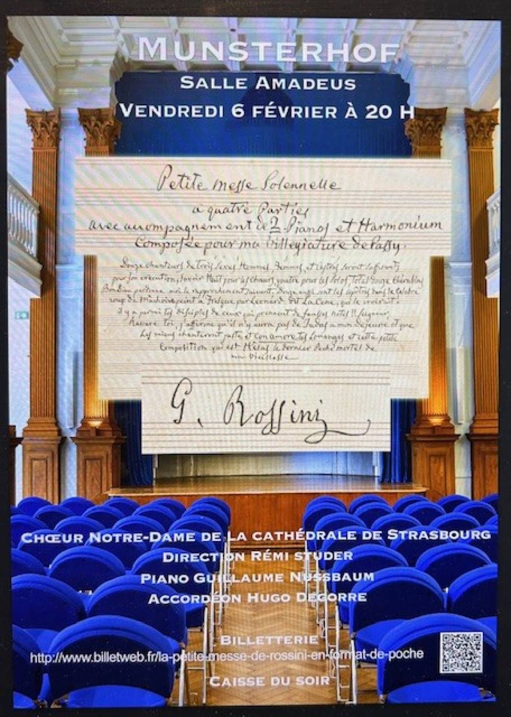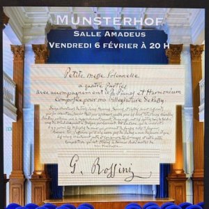 La Petite messe solennelle de Giachino Rossini a été composée en 1863, par Rossini dans les dernières années de sa vie. Ils s'agit d'une commande privée, jouée en 1864 pour la 1ère fois dans la chapelle privée d'un hôtel particulier. Le format du concert est comparable à celui du Munsterhof.
