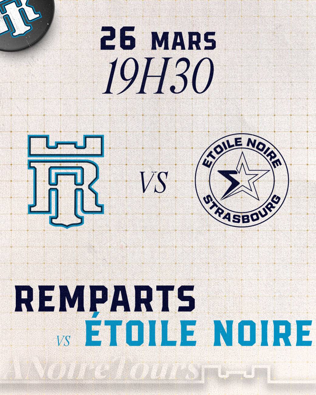2026-03-26 19:30:002026-03-26 22:30:00Europe/ParisPLAY-OFFS - Remparts de Tours vs Etoile Noire de Strasbourg (D1, Match 4)Reservations on : https://www.billetweb.fr/play-offs-remparts-de-tours-vs-etoile-noire-de-strasbourg-d1-match-4