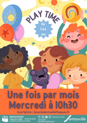 2026-04-22 10:30:00 2026-04-22 11:30:00 Europe/Paris Playtime à la médiathèque Reservations on : https://www.boucledesmediatheques.fr/Sartrouville -- Récréations ludiques en anglais animées par Jennifer.   Pour les enfants de 5 à 6 ans.   Gratuit sur inscription Médiathèque de Sartrouville, Place des Fusillés, Sartrouville, France Médiathèque de Sartrouville