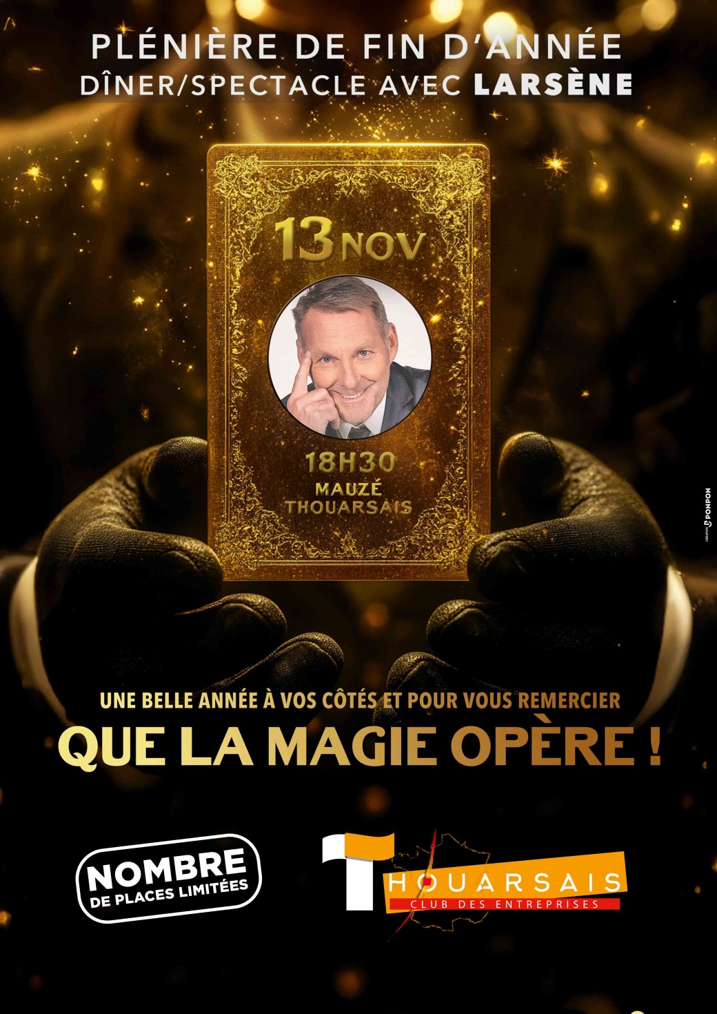 Cette soirée, placée sous le signe de la magie et de la convivialité, accueillera un invité d’exception : Larsène, célèbre mentaliste et magicien, qui viendra surprendre et émerveiller les participants avec son univers fascinant.