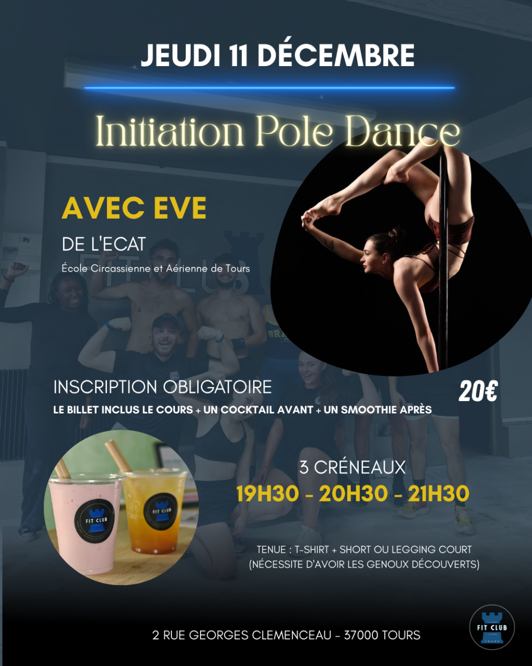 Reservations on : https://www.billetweb.fr/pole-dance-au-fit-club --