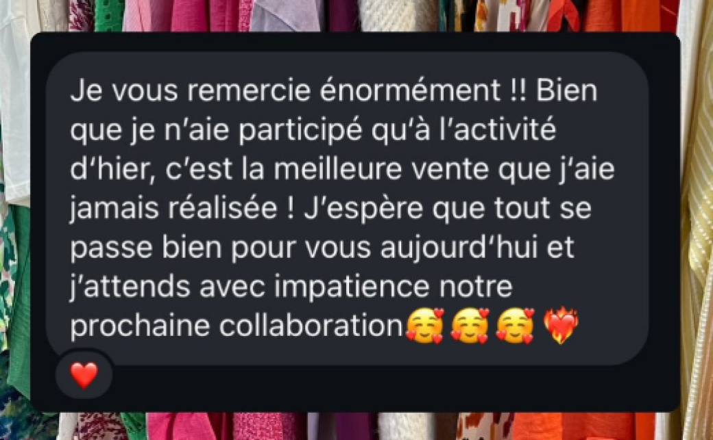 Nous ne prenons aucune commission sur vos ventes physiques. Vous gérez directement votre stand et encaissez vos ventes via les moyens de paiement de votre choix : espèces, Lydia, PayPal, terminal SumUp…