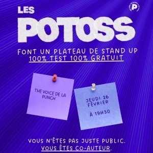 2026-02-26 19:30:002026-02-26 20:30:00Europe/ParisPotoss - 100% testReservations on : https://www.billetweb.fr/potoss-100-test