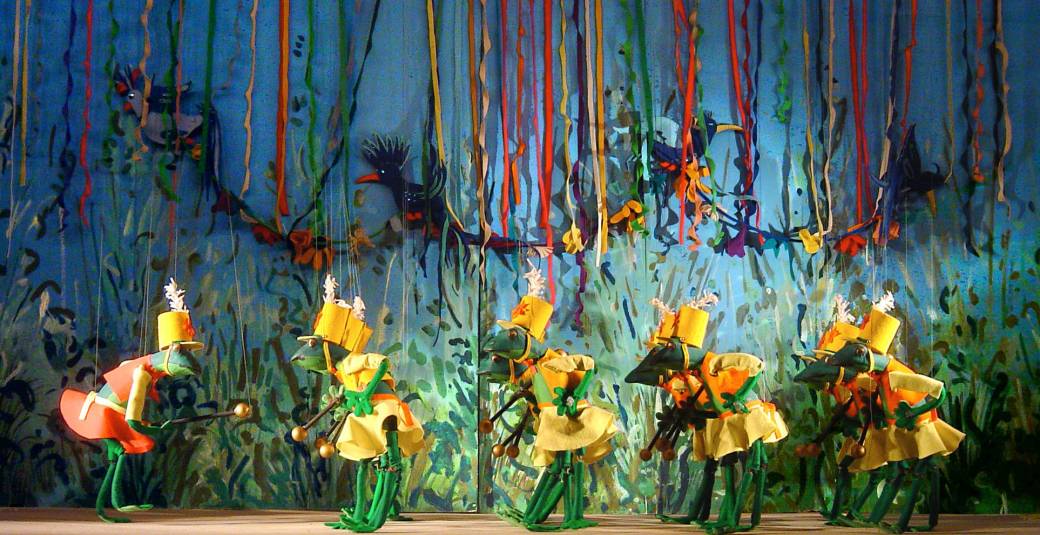 Un spectacle réjouissant, où les marionnettes sont naïvement traitées comme de gros jouets en feutrine aux couleurs vives.