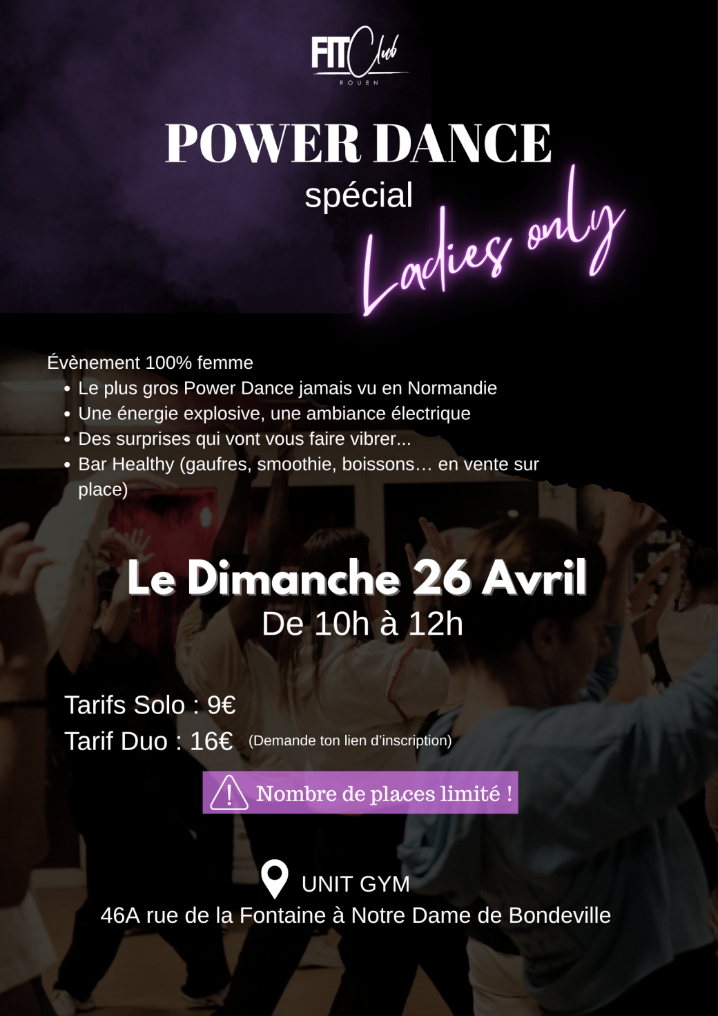 Le plus grand Power Dance jamais vu débarque en Normandie — et c’est 100% entre femmes ! Un mix explosif de danse et de fitness pour se dépenser tout en s’amusant. Pas besoin d’être danseuse confirmée, tous les niveaux sont les bienvenus. L’essentiel ? Venir avec votre bonne humeur ! ????
