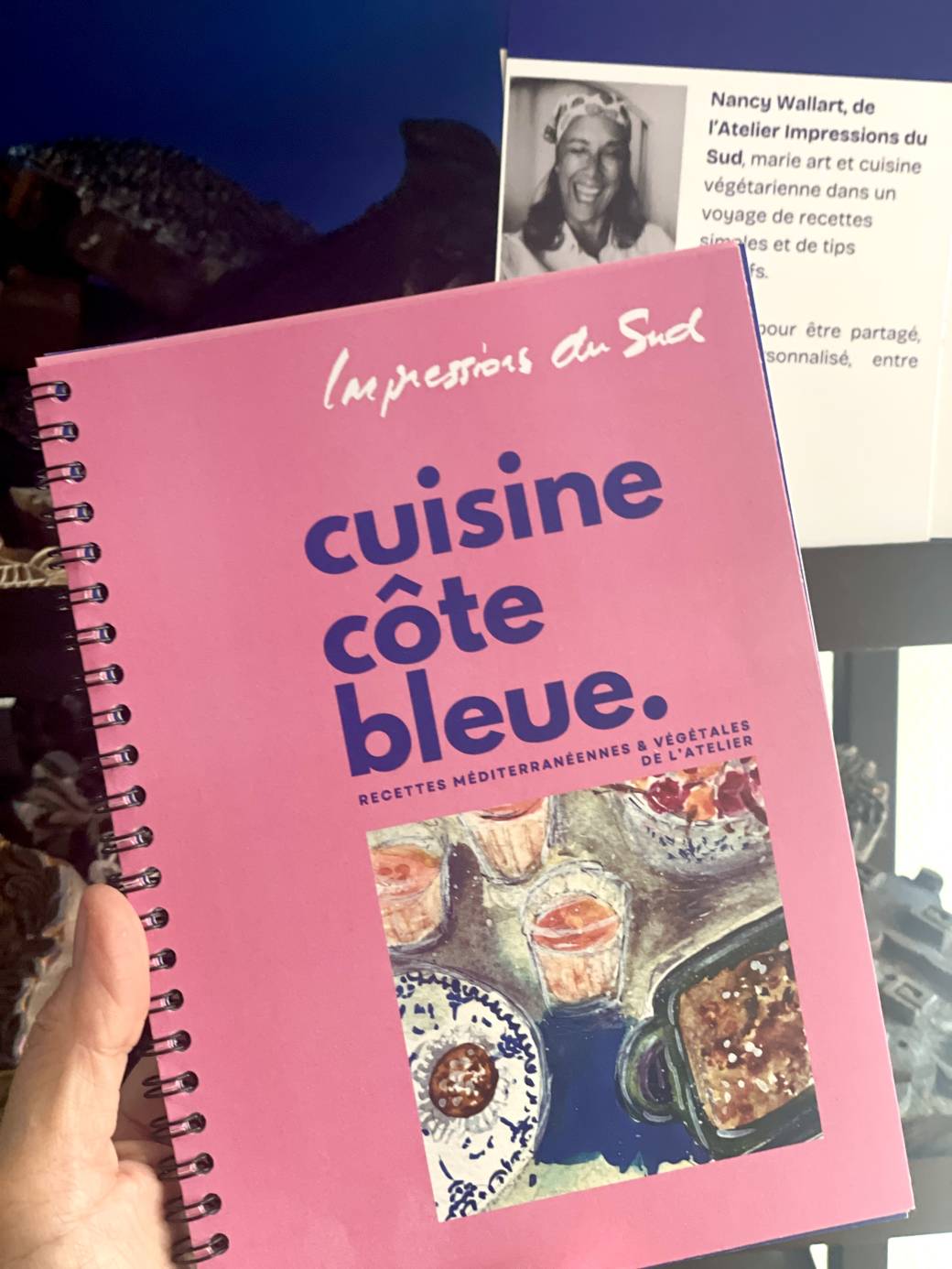 2025-09-24 12:40:00 2026-06-30 00:00:00 Europe/Paris livre "CUISINE VEGETALE CÔTE BLEUE" Reservations on : https://www.billetweb.fr/pre-commande-livre-cuisine-c-te-bleue -- "Cuisiner c'est peindre avec les couleurs de la Méditerrannée"   J'ai un atelier artistique sur la Côte Bleue, à l’ouest de Marseille. Au fil des retraites que j’y crée et organise, j’ai découvert que la cuisine pouvait être, elle aussi, une forme d’expression artistique. Mes amis, mes stagiaires et ma communauté me demandent souvent mes recettes. C’est ainsi qu’est née l’idée de ce livre : rassembler des plats simples et végétaux, inspirés par la Méditerranée, le végétal et mes voyages. Des recettes colorées, originales et conviviales, comme une palette à savourer. Ce livre est une invitation à goûter l’art autrement, mais aussi un carnet pour inspirer votre propre créativité, et vous donner des idées à réinventer dans votre cuisine. - Nancy Wallart EI