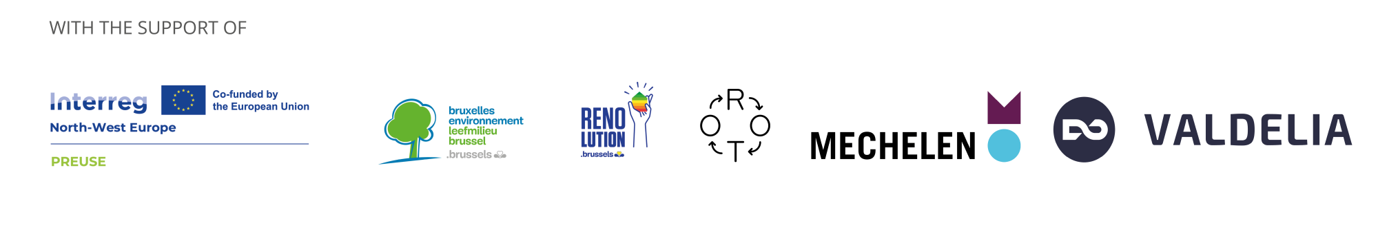 This symposium is organized by Rotor asbl as part of the Interreg NWE PREUSE project, bringing together nine partners across Belgium, France, Luxembourg, and the Netherlands. It was made possible with the support of Bellastock, Bruxelles Environnement - Brussel Leefmilieu, National Centre for Continuing Vocational Training of Luxemburg, RENOLUTION, City of Mechelen and Valdelia.