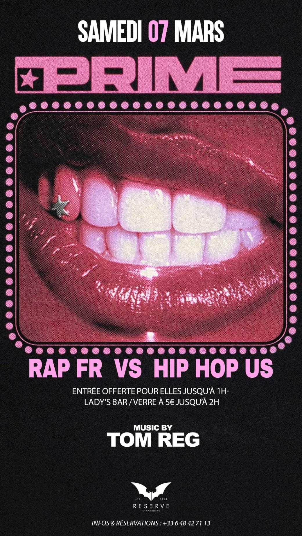 Reservations on : https://www.billetweb.fr/prime1 -- - ENTREE OFFERTE POUR ELLES JUSQU'A 1H - LADIES BAR / VERRE A 5 EUROS JUSQU' A 2H