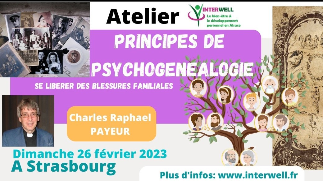 2023-02-26 10:00:00 2023-02-26 10:00:00 Europe/Paris Atelier "Principes de psychogénéalogie: se libérer des blessures familiales" Reservations on : http://www.interwell.fr -- Lors de cette journée d’étude, Charles-Rafaël Payeur vous propose de découvrir la psychogénéalogie . Elle repose sur l’idée selon laquelle les expériences vécues par les ascendants ont un impact sur la vie de leurs descendants, particulièrement lorsqu’elles sont inachevées. Charles-Rafaël Payeur vous initiera d’abord aux grands concepts de cette discipline, se référant notamment aux travaux d’Anne Ancelin Schützenberger ou de Didier Dumas. Puis, il vous invitera à découvrir une dimension plus mystique de l’arbre généalogique, considéré comme une réalité vivante et non comme un simple témoin du passé. Il vous apprendra alors comment il est possible et nécessaire d’y consentir pleinement. Enfin, il vous enseignera à identifier les principales problématiques transgénérationnelles et la façon de les harmoniser grâce à une étude kabbalistique des sept fantômes du "Palais de Lilith".   Charles-Rafaël Payeur vous partage certains enseignements précieux qu'il a reçus lors de ses formations et… Centre Culturel Saint-Thomas, Rue de la Carpe Haute, Strasbourg, France Association interwell