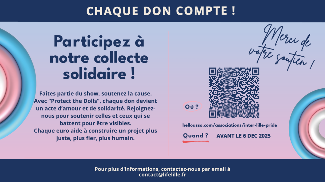 Les fonds collectés seront reversés à des associations venant en soutien à la communauté trans. Chaque billet acheté compte, chaque participation fait une différence.
