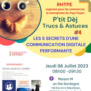 2023-07-06 08:00:00 2023-07-06 09:30:00 Europe/Paris P'tit Déj Trucs & Astuces #4 Reservations on : https://www.billetweb.fr/ptit-dej-trucs-astuces-4 -- Maison M on the Dordogne, 146 Rue de la République, 33220 Sainte-Foy-la-Grande PLIE du Libournais