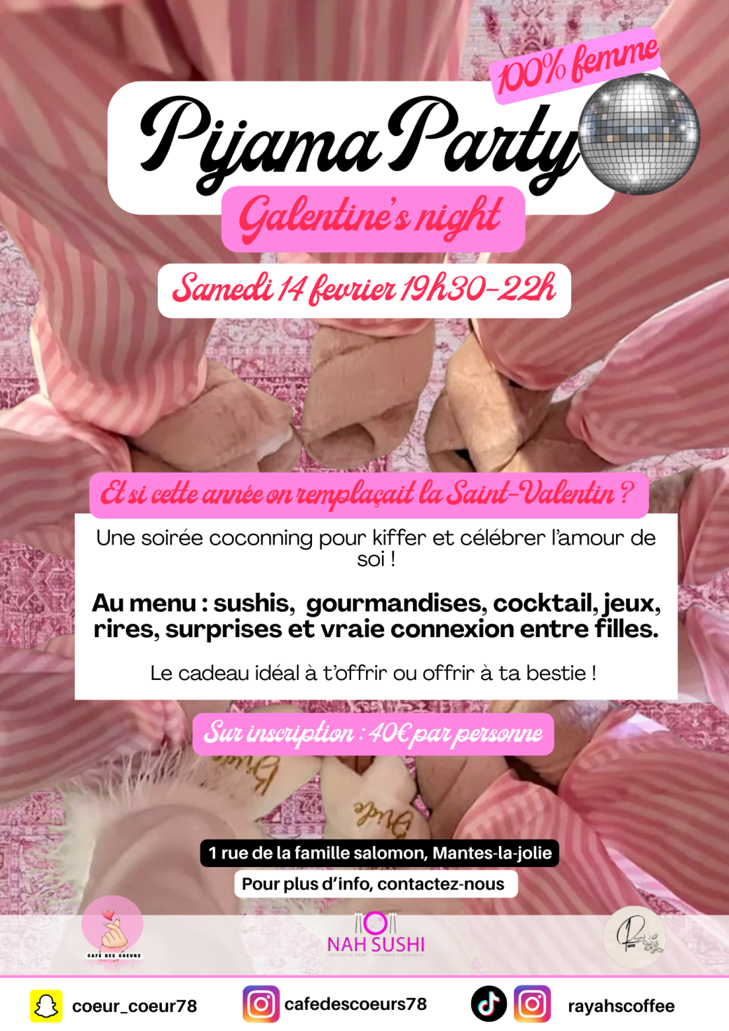 Bienvenue à la Galentine Night : la pyjama party 100% femmes organisée par La Café des Cœurs et Rayah’s Coffee.