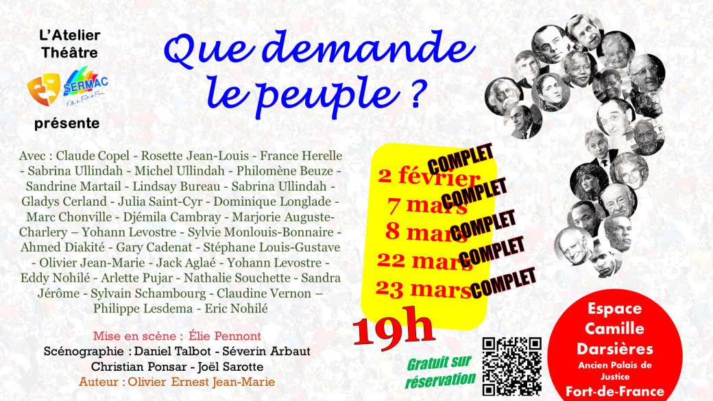 L'action se déroule entre la Martinique et la France hexagonale durant l'entre-deux-tours de l'élection présidentielle de 2032. Lors du 1er tour, 96% des inscrits se sont abstenus et 83% des électeurs qui se sont exprimés ont voté blanc. Les journalistes, les politistes, les candidats et les citoyens sont profondément interpellés et bousculés par ce séisme électoral ...Espace Camille Darsière, Rue Moreau De Jones, Fort-de-France, MartiniqueATELIER THEATRE SERMAC