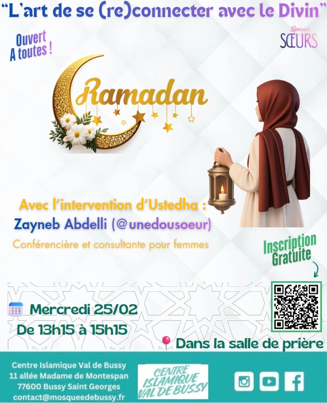 2026-02-25 13:15:002026-02-25 15:15:00Europe/ParisRamadan Soeurs avec Ustada ZaynebReservations on : https://www.billetweb.fr/ramadan-soeurs-avec-zayneb