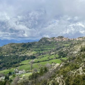 Depuis le village perché de Toudon, le sentier monte régulièrement vers la Cime des Colettes, au cœur des paysages calcaires de l’Estéron. Au sommet, on observe un panorama net et dégagé sur les crêtes enneigées du Mercantour, ainsi que sur l’ensemble du Cheiron et du pays de Grasse.